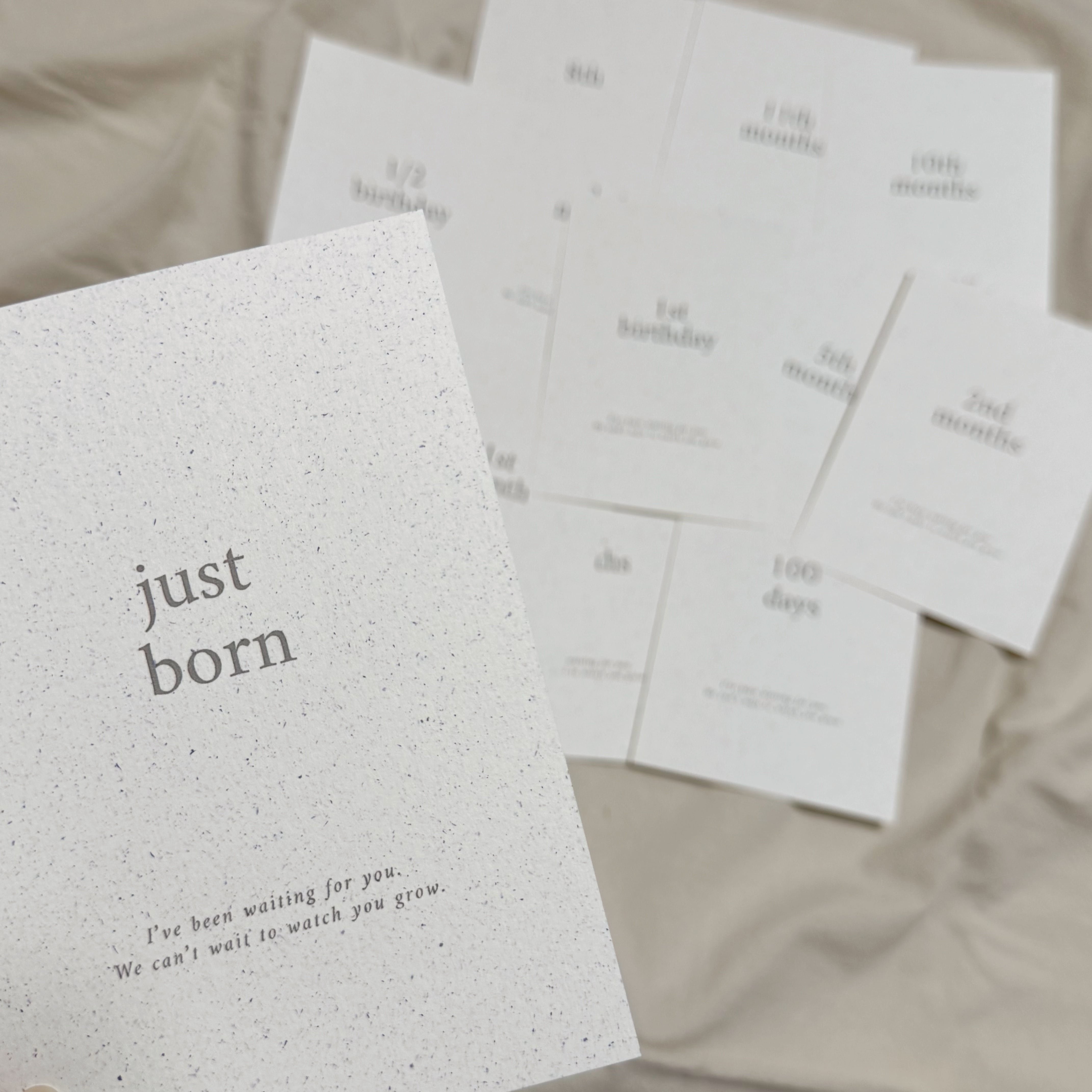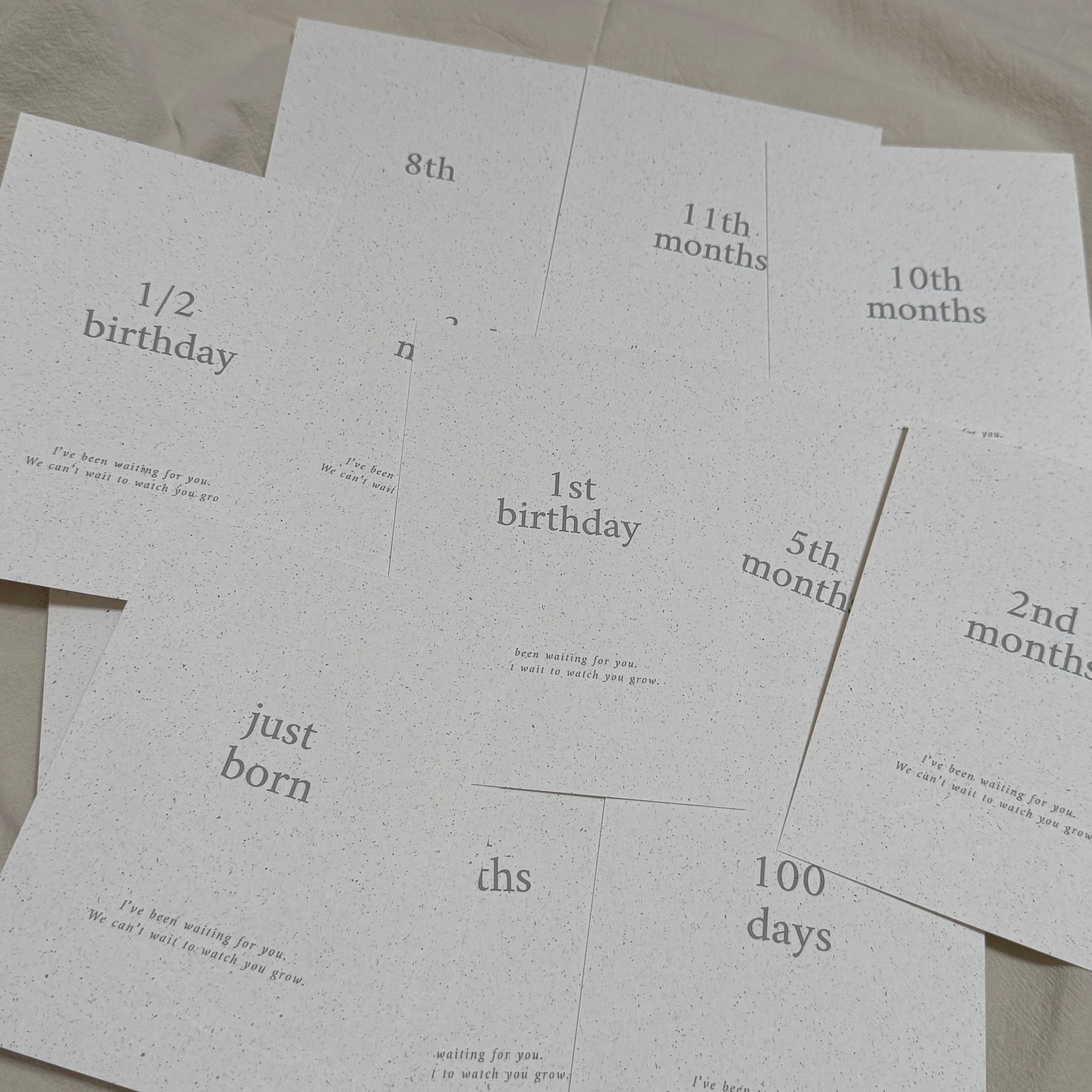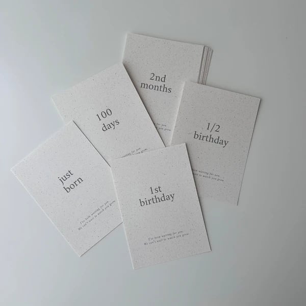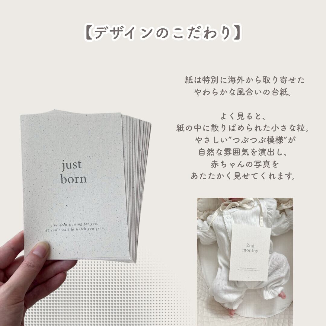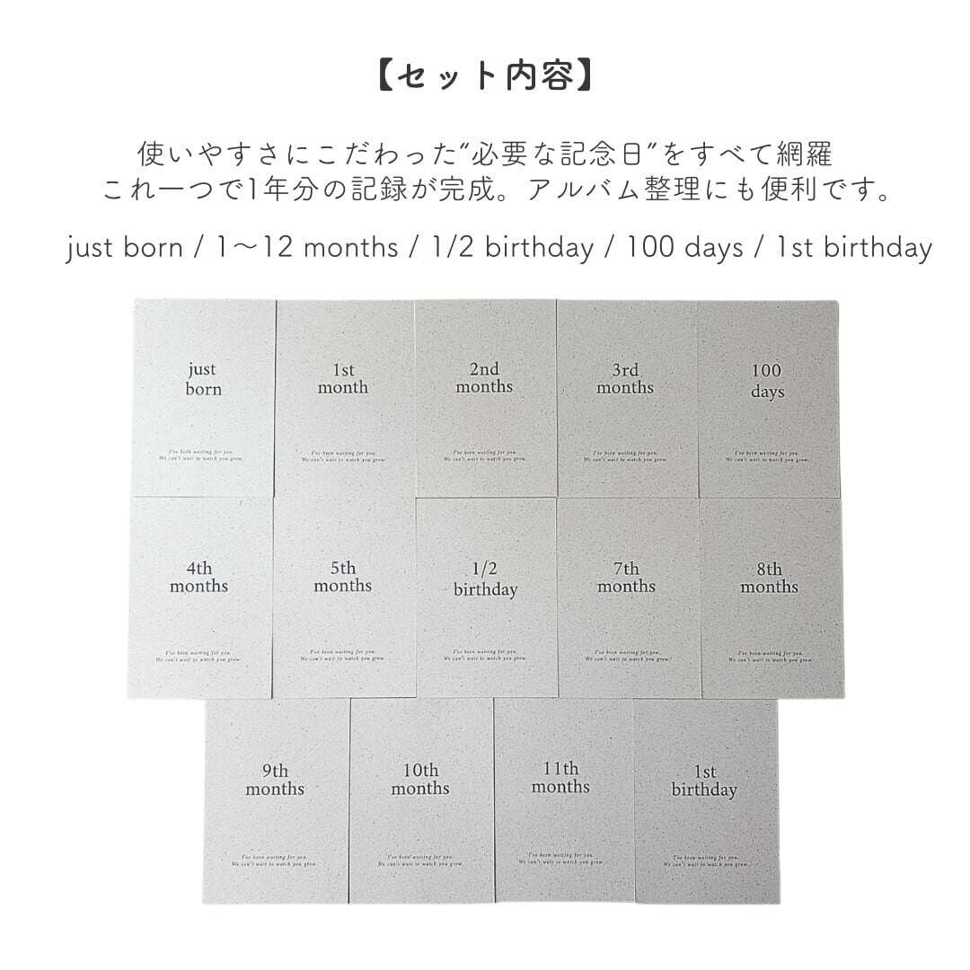 赤ちゃんの「Just Born」から「1歳のお誕生日」までを記録できる、kawaiiZOUの人気のマンスリーカードセットです。