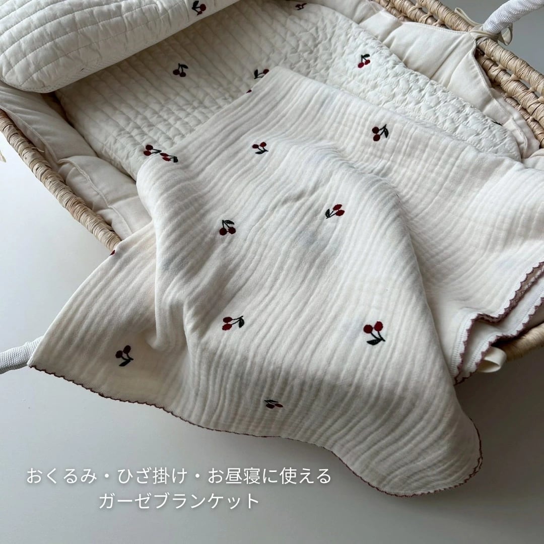 韓国製のトリプルガーゼを使用し、空気を含んだふんわりとした肌ざわりが魅力のブランケットです。