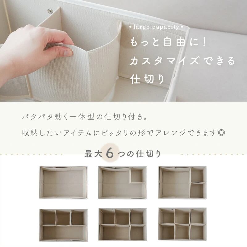 仕切りが動くから、キレイに収納もでき、自分スタイルにカスタマイズできます。