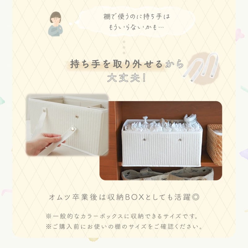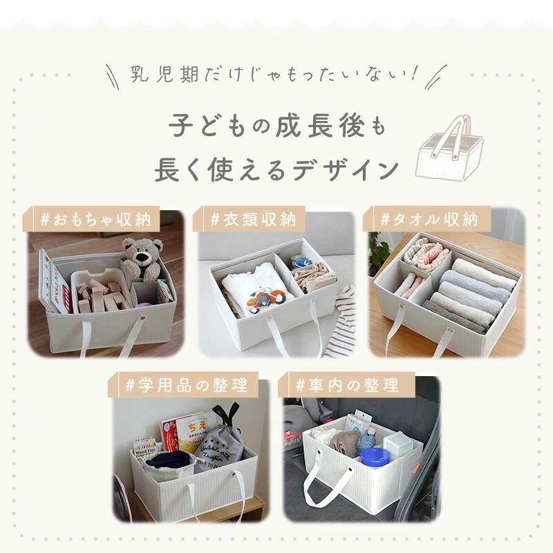 おむつを卒業した後は、おもちゃ収納や衣類収納などにも使えます。