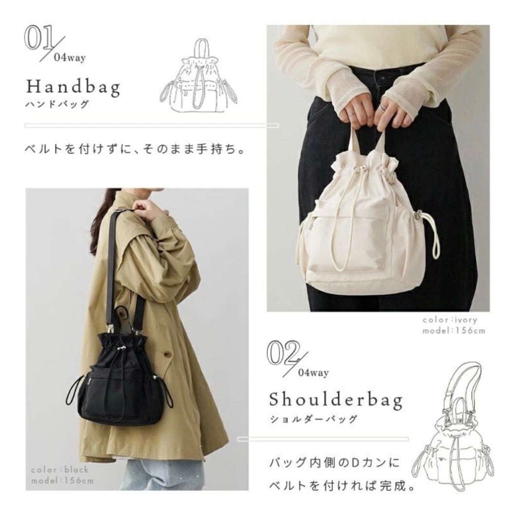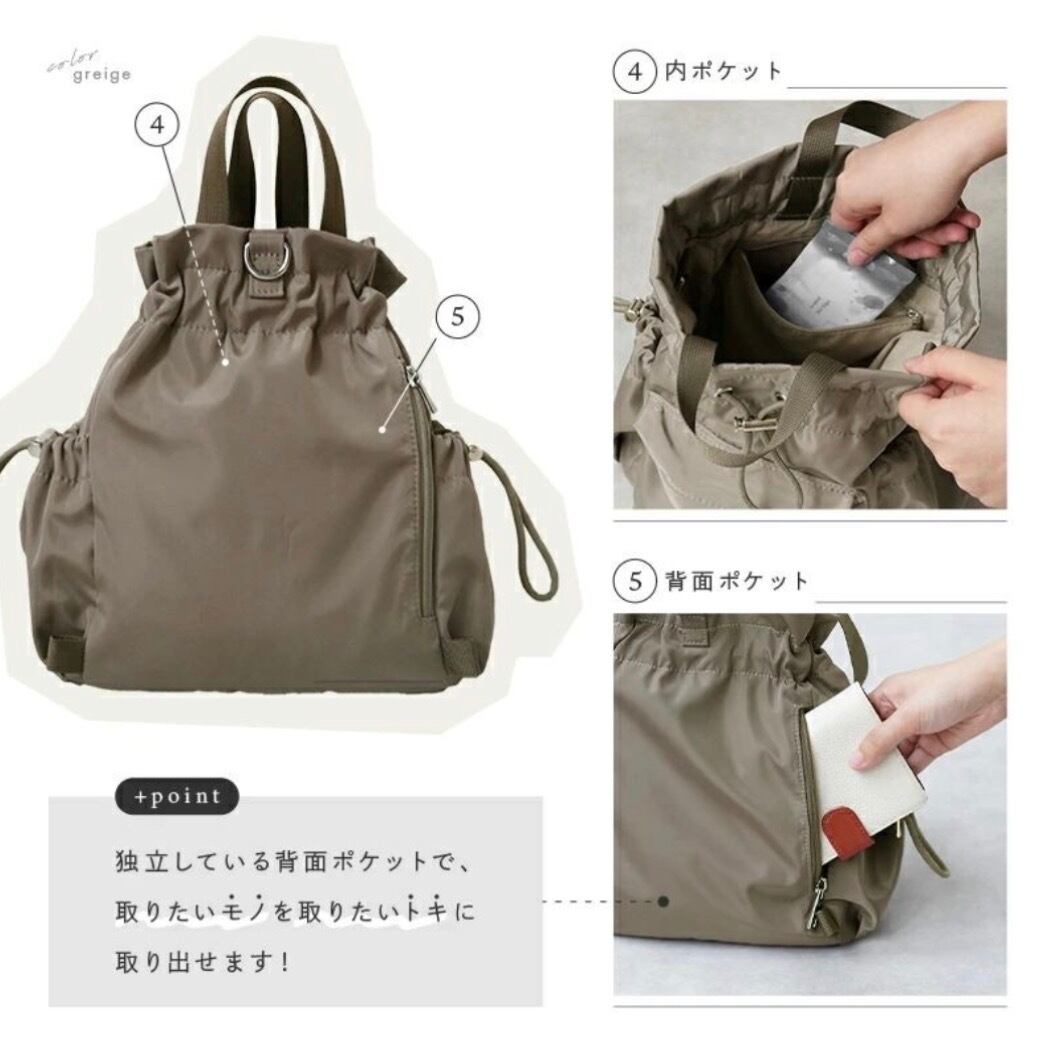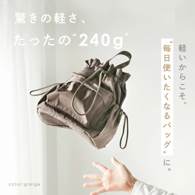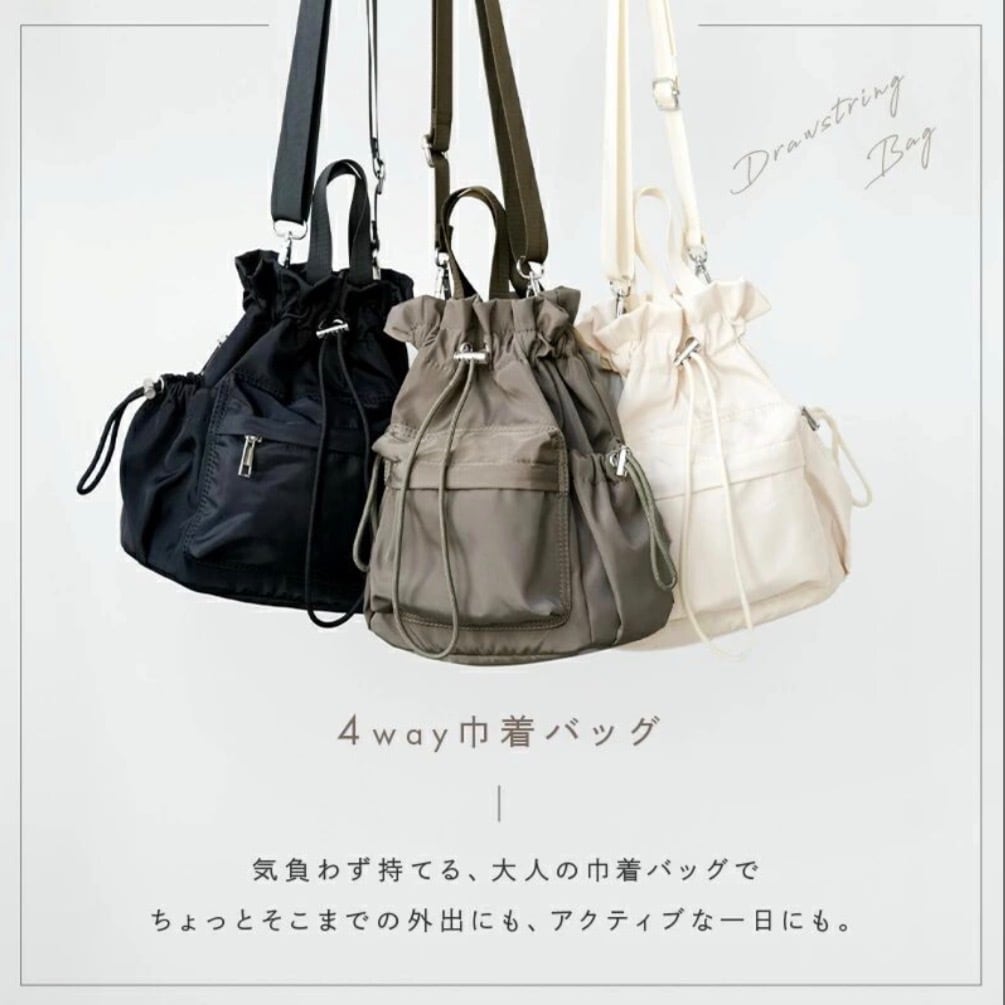 忙しいママや働く女性にぴったりの 4way巾着バッグ。