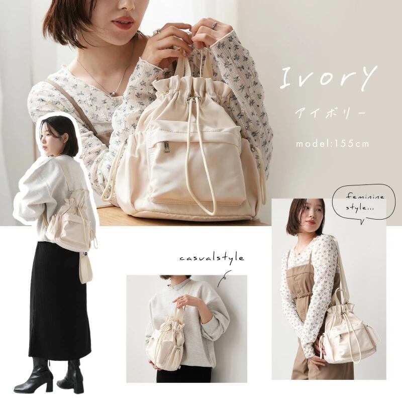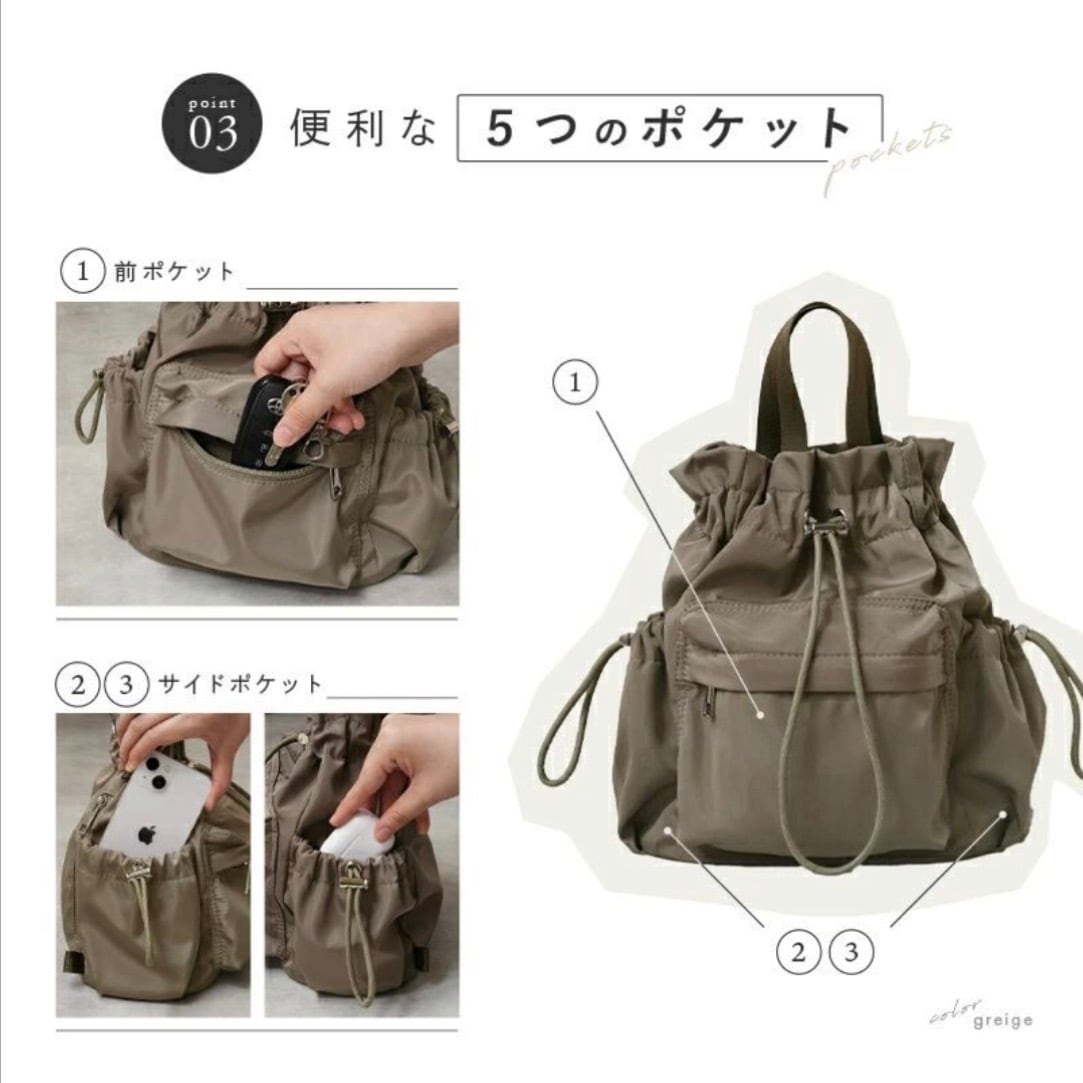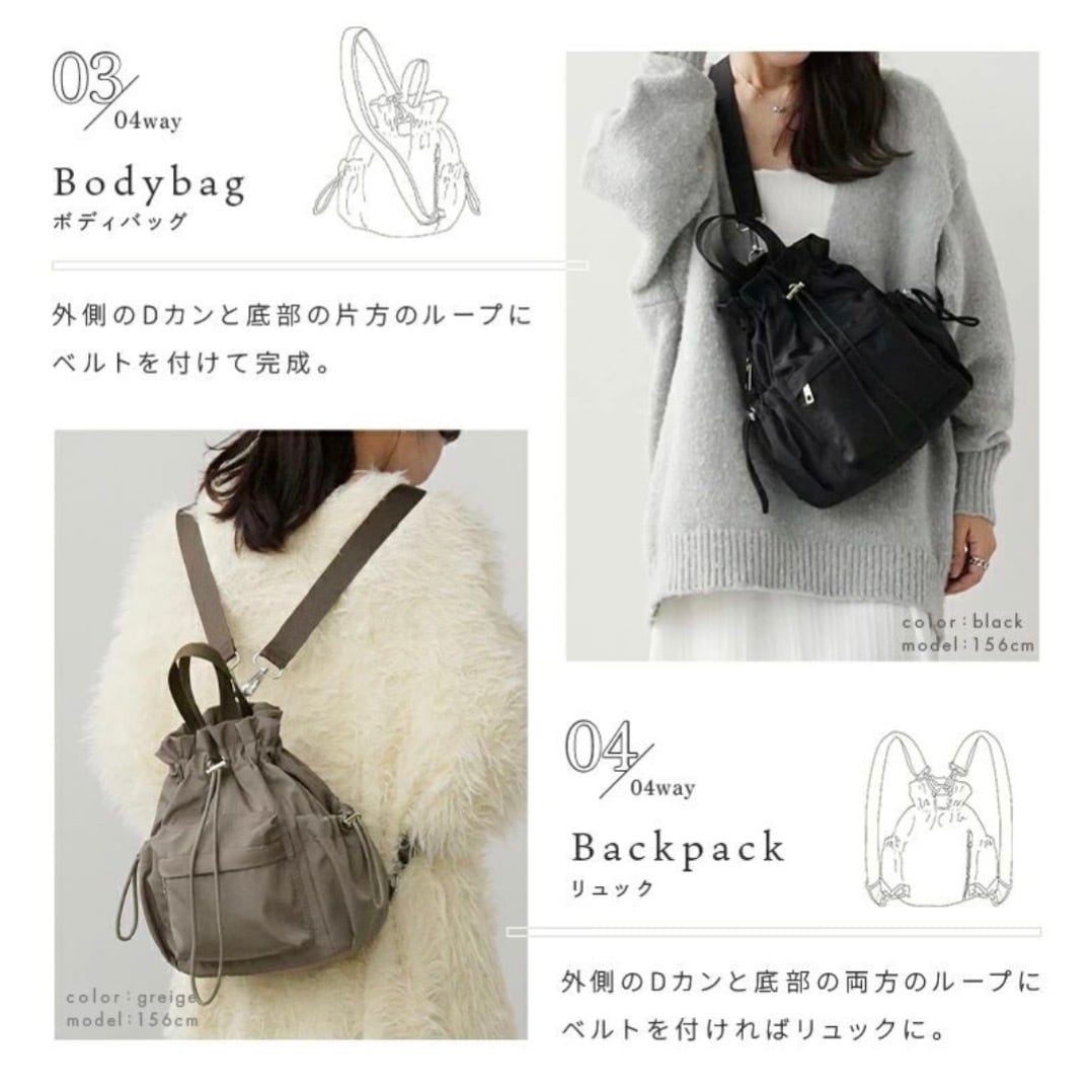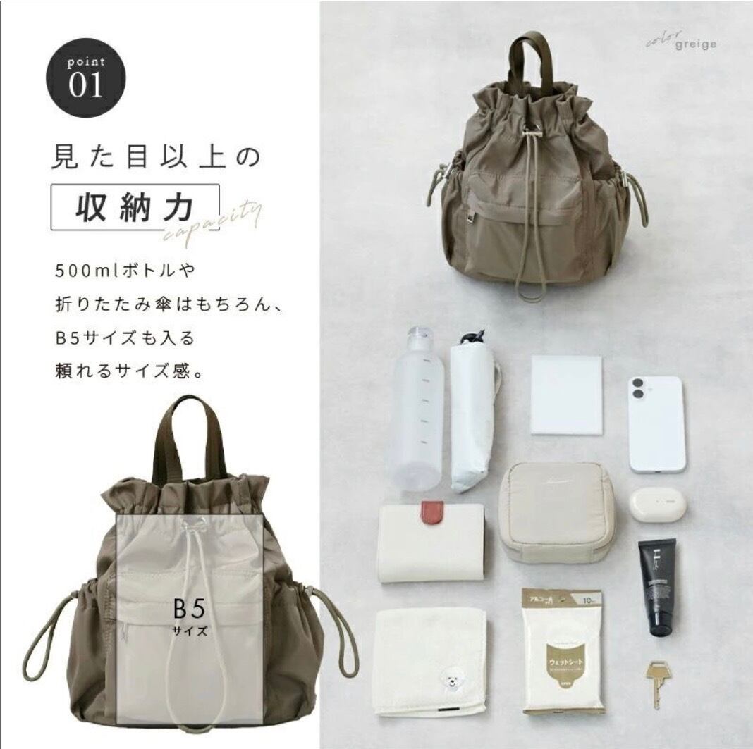忙しいママや働く女性にぴったりの 4way巾着バッグ。