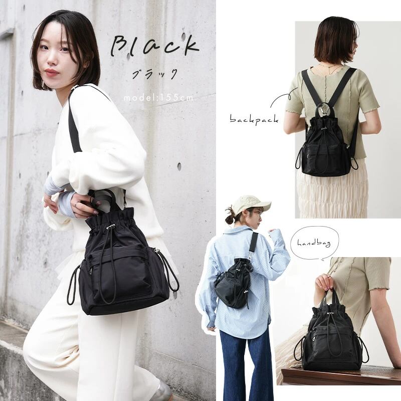 ハンドバッグ、ショルダーバッグ、リュック、バックパックの 4wayで持ち方自由自在。